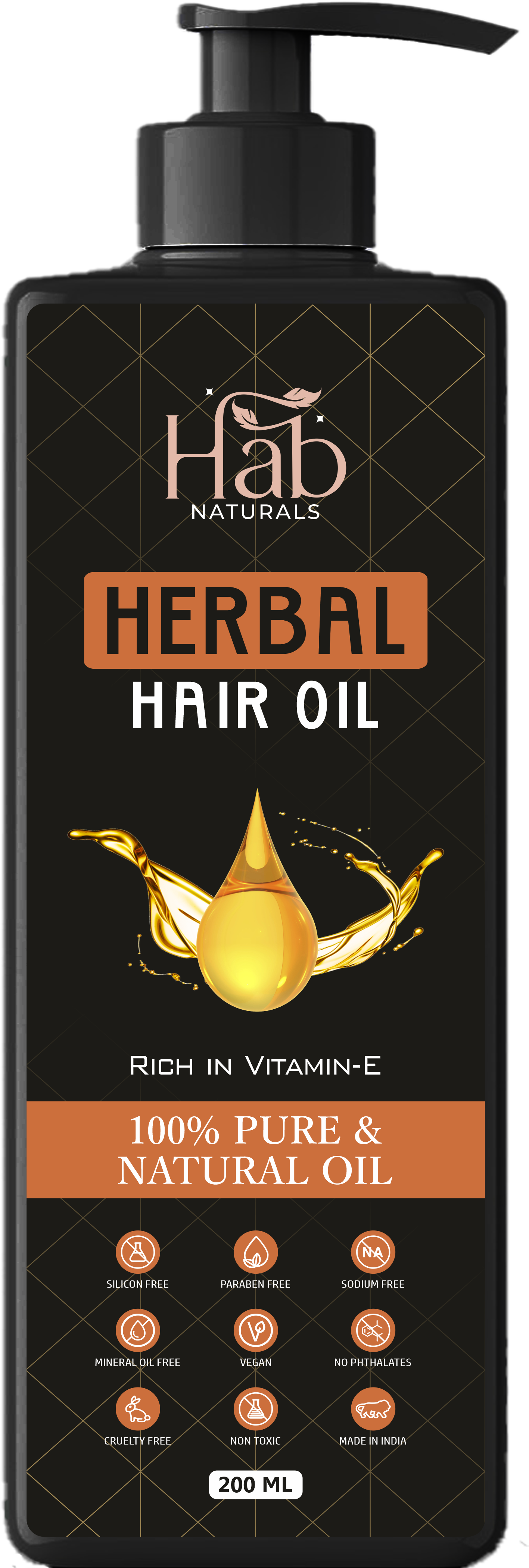 Herbal oil is made using olive, almond, bhingaraj, coconut, amla, sesame, vitamin-E, etc. Olive oil conditions hair and promotes hair growth, while almond oil softens hair roots. Bhingaraj oil prevents graying of hair. Amla provides a large amount of Vitamin-C.